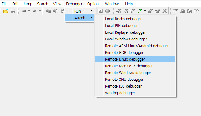- 윈도우에서 구동하는 에뮬레이터여서, x86 아키텍처의 IDA 서버를 설치함